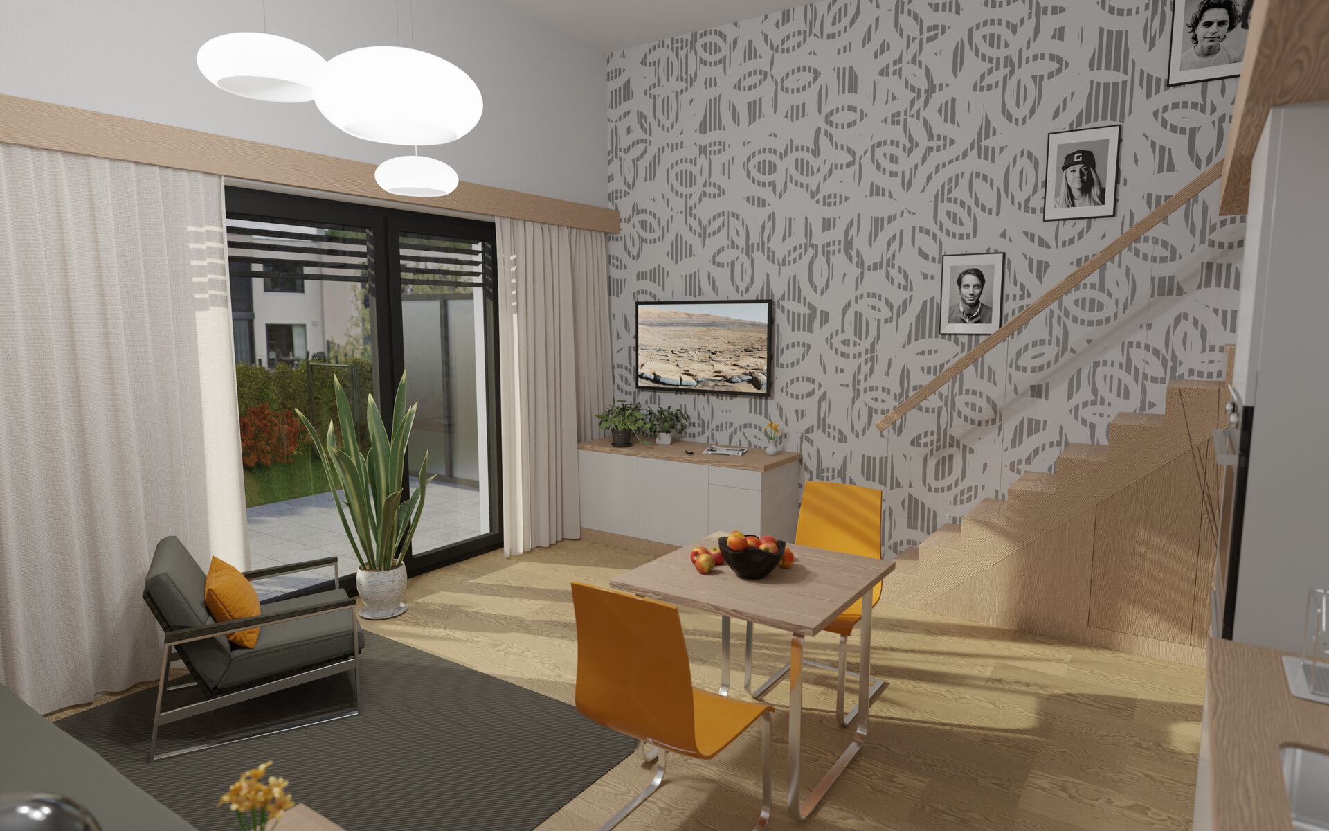 Vizualizace interiéru bytové jednotky v navrhovaném obytném komplexu v Mladé Boleslavi